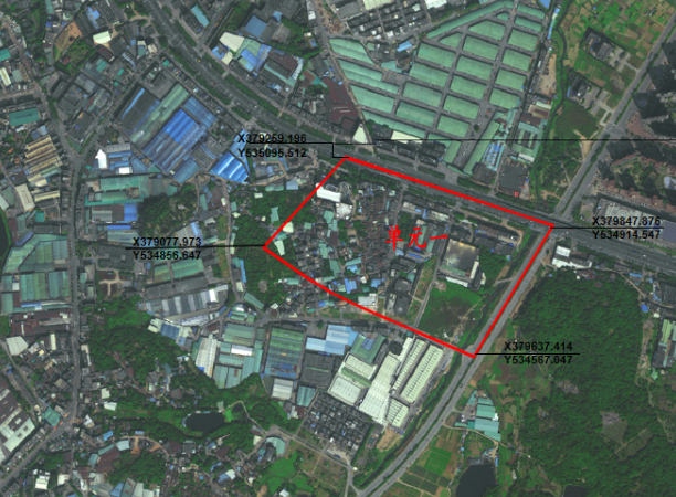 项目改造范围位于东莞市万江街道牌楼基社区,东至牌楼基河北路、南至葡萄庄园交界、西至牌楼基金鳌路,北至牌楼基汾溪河,占地面积约为17.9万平方米(折合面积约270亩),实际用地面积、界线最终以测绘或政府相关土地管理部门批复的文件为准。